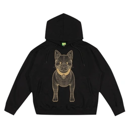 Shining Bright Cat Wire Gold Pullover Hoodie - Black